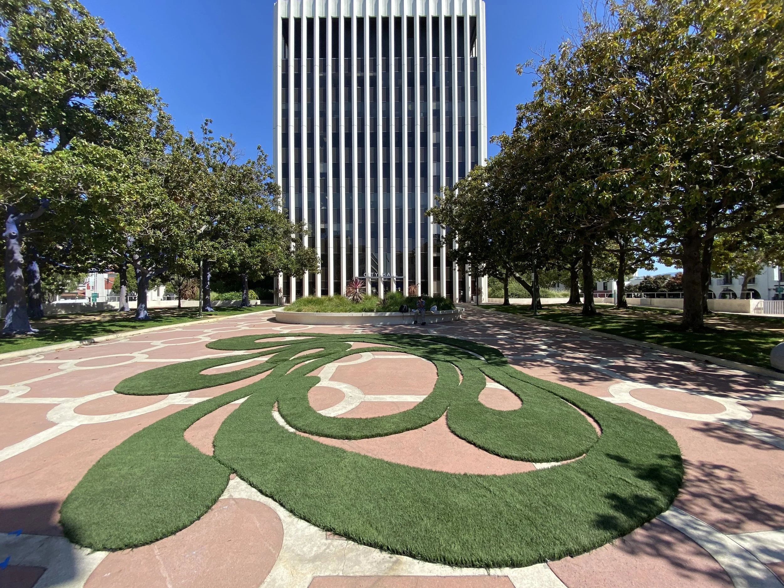 In 2020, I had the incredible opportunity to assist Bay Area artist Paz de la Calzada in carving and assembling her interactive public art installation, The Bucolic Labyrinth. We cut the labyrinth’s winding path from recycled turf squares sourced from a local soccer field. The installation not only challenged the use of synthetic turf but also highlighted art’s ability to transform waste into something meaningful.